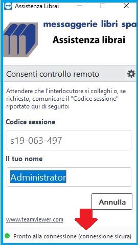 Completato il passaggio precedente, si può avviare il file scaricato. Nella finestra Team Viewer che si apre è disponibile il codice sessione da comunicare all'operatore che richiede il controllo remoto del PC non appena il software risulterà Pronto alla connessione